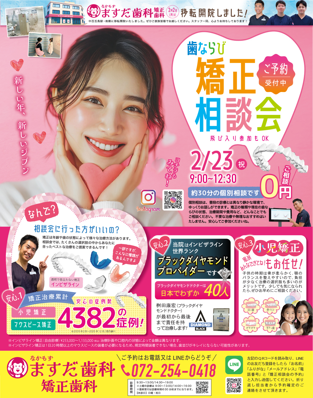 24時間いつでも LINEで「矯正相談会の予約」と